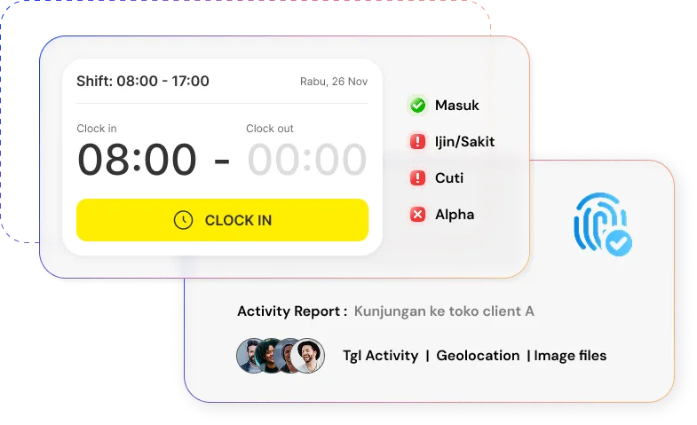 Aplikasi Absensi (HRIS), include payroll, activity, task management, penjadwalan lengkap, laporan, dll